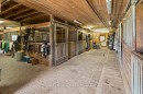 49-Acre Equestrian Paradise - A dream setting for horse and rider. Your horses will thrive in 10 lush paddocks with frost-free hydrants and hydro for winter, you'll appreciate the insulated, ventilated 20-stall barn with heated tack room , 3-piece bath, feed room, wash & grooming stalls and hay storage above. Currently operating as a pleasure riding & eventing facility, this property is designed for year-round training with an attached 76' x 160' indoor arena with operable windows and good footing. Take it outdoors to the expansive jumping field, 150' x 200' sand ring and a grass dressage field. Two productive hayfields add income potential & self-sufficiency. A 23' x 30' heated portable with hydro expands your options for an office or studio. The elegant home (built in 1997) blends timeless design with modern comfort. 9' and cathedral ceilings pair with wide-plank, hand-scraped hickory hardwood for a refined main level. At the heart of the home, a chefs kitchen with Wolf cooktop, leathered granite counters & a generous island flows seamlessly into the dining area and Great Room with beamed cathedral ceiling. A main-floor bedroom with 2-piece ensuite offers flexibility; upstairs, 3 additional bedrooms with timeless oak hardwood floors. Both upper bathrooms have been thoughtfully renovated, showcasing heated floors & towel warmers for everyday luxury. The expansive primary retreat offers a dressing room, a walk-in closet with built-in organizers, and a stunning spa-inspired ensuite designed for relaxation. The walk-out lower level remains unspoiled, ready for your vision. Thoughtful updates ensure efficiency and peace of mind: a 2024 cold-climate heat pump with high-efficiency propane furnace backup, Generac generator to power farm essentials, energy-efficient Pella windows & durable updated Goodfellow siding. This is the ultimate equestrian lifestyle, surrounded by other fine horse farms ideally located just minutes to Angelstone, Meadowlarke North, & Palgrave.