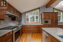Brewster's Lake - over 200' waterfront with a bungalow, shop and garage on a 3.2 acre hardwood lot. Lake views from nearly every room in the home. Spacious rooms throughout the 2,500 square foot main level including open concept kitchen, dining and living areas with vaulted ceilings and a wood-burning fireplace. The walkout basement is fully finished with massive family room, office or 5th bedroom with ensuite; walkout to hot tub, patio and lakeside. SHOP 30x52 with in-floor heat, spray foam insulation, Trusscore interior, 3 roll up doors; detached single garage and attached double garage with in-floor heat. On demand hot water, generator back up, metal roof, new windows (2018), central air, water system, greenhouse, hot tub and more. The private waterfront boasts a sandy beach, dock and firepit. Four season living in a four season playground 20 minutes to Collingwood and Blue Mountain, 10 minutes to Devils Glen Country Club (private) and minutes away from year-round trails and recreational activities. Includes part ownership of additional waterfront lot. (id:27)