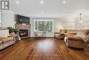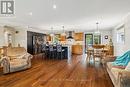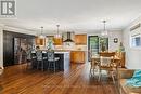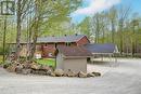 Tucked away on a picturesque 2-acre lot, this fabulous raised bungalow is your own private escape, where comfort, style, and nature come together beautifully. Surrounded by mature trees and lush landscaping, this home offers 4 spacious bedrooms, 2 full bathrooms, and a layout that's perfect for both everyday living and weekend entertaining. The main level impresses with rich cherry hardwood flooring and a bright, open-concept design that flows seamlessly from the living room, complete with a cozy fireplace, to the dining area, which walks out to a large deck and covered hot tub. The kitchen is a true showstopper, featuring custom Durnin cabinetry, gleaming quartz countertops, a double wall oven, induction cooktop with pot filler, and a generous island with seating for casual meals or evening chats. The primary bedroom offers a serene retreat with ensuite privilege to a stunning 5-piece bathroom, complete with a custom marble shower and soaker tub that'll have you feeling like you've checked into a boutique spa. Downstairs, the lower level is just as inviting, boasting a spacious family room with its own fireplace, a stylish wet bar, and a walkout to the carport, perfect for cozy nights in or hosting friends. Outside, the magic continues with a peaceful pond, two handy sheds, and a dream 500 sqft. garage/workshop, fully insulated, heated, wired with hydro, and topped off with a 10-foot garage door. Whether you're into cars, crafts, or just need the extra space, this one checks every box. With plenty of parking and room to roam, this property offers the peace of country living with all the extras. Its not just a home, it's a lifestyle! (id:27)
