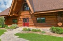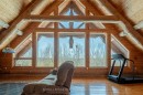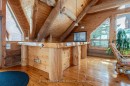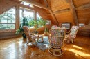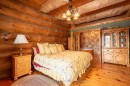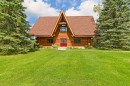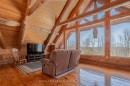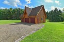Maplelands - One of a kind, spectacular Scandinavian scribed log home in park like setting on 34 acres with 2 ponds in Mulmur. Spectacular log home in a private, serene setting with views of the Mulmur hills, only 75 minutes from Toronto's airport. This home combines quality and breathtaking views to the north, south, east and west. The 3600 square foot home on three levels was built by artist Laura Berry who created a painting of it called Peaceful Reflections. The main floor living area features a beautiful pine kitchen with Caesar stone countertops, wide pine plank floors, mud room, guest bathroom, a primary suite with custom-made four-piece ensuite, an exquisite floor to ceiling custom made armoire and a walk out to a massive deck overlooking a spring fed pond. A log staircase leads to the second level great room that features cathedral ceilings, a massive log bar, wide plank pine floors, huge windows with views in all directions as well as a walk out to an upper deck. The lower level has two walkouts and has the potential to be an in-law suite. Every detail of this home exudes craftsmanship and sophistication including three handcrafted pendulums with a carved-in maple leaf in each on both sides of the house and over the three-car garage. Additional features include a gazebo by the pond, a fixed and floating dock, and UV water system. Enjoy unmatched privacy and spectacular sunrise and sunset views in your sanctuary of peace and tranquility. This property is ideal as a full-time residence or a serene weekend retreat. Located just a short drive from the Mansfield Ski Club and about 40 minutes to Blue Mountain and Collingwood.