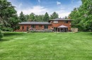 Rare Premium Private 10 Acre Parcel with Southern Exposure, Mature Trees, 2966 SQFT 5 Bedroom Home w/ 3 Car Garage + Storage Loft + Finished Basement, 3 Car 35x21 Detached Workshop + Loft, 6 Stall Barn + Hay Loft, 3 Paddocks, and Acre Pond on Desirable Feasby Road. Enter through the long tree-lined private driveway into your own country retreat. Custom built 2966 SQFT 5 Bedroom 4-Level Sidesplit offers large principal rooms, a covered front porch, a bright open-concept layout and two kitchens. Oversized Family Room with laminate flooring, wood stove and multiple walk-outs to the patio. Spacious Combined Dining/Living Room with laminate flooring. Primary Suite with walk-in closet and 3-piece ensuite. 5th Bedroom with 3 piece bathroom, kitchen and laundry room is ideal for multi-generational living. 3 Car Detached Garage/Workshop (1991) is insulated/heated with a wood stove, electric blower and propane heater as well as a storage loft. 6 Stall Barn w/ Hay Loft (1986), Tack Room, Shavings Storage Room, and Hydro. The majority of the lot is open and dry with the perimeter of the lot lined with mature trees enhancing the privacy and natural setting. Original Long-Time Owners. First Time Offered. Quiet Dead-End Section of Feasby Road Offers Privacy and Low Traffic.