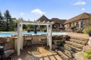 Rare 3923sf Elegant Tuscan Styled Bungalow Estate on a 2.71 acre mature forest lot fabulously located at the end of a quiet court. It is nestled into the prestigious Heritage Hills II enclave, just a couple of minutes south of downtown Uxbridge with direct access to the famous Uxbridge Trails (Country Side Preserve.)This unique architectural beauty surrounds a central back courtyard and is complimented with soaring ceilings, numerous windows, finished basement and 4 car garage. It is nestled into a breathtaking 2.71 acre property backing to forest and the Wooden Sticks Golf Course. This exceptional floor plan is designed for entertaining. The heart of the home is the oversized Tuscan-inspired kitchen, presenting a breakfast bar, a centre island and an entertaining-size huge family room. The sunlit main floor, with numerous walk-outs features, formal dining and living room, library, two wings with primary bedroom suites (which can easily be converted to 3 bedrooms), laundry room and an additional staircase to the basement. The professionally finished basement includes a service kitchen, two bedrooms, two bathrooms, a hobby room, an exceptional wine cellar, custom bar, recreation and games room, and ample storage space. The magnificent resort style backyard paradise with mature trees, formal landscaping, several walk-ways, symmetrical flower beds and manicured hedges has been exceptionally planned and maintained. Enjoy all the vacation features of a free-form inground pool with built-in bar, waterfall, gazebo, pool house with bar, outdoor kitchen, central court yard, lazy river stream, volleyball court, horseshoe pit, vegetable garden, firepit and forest trail. The Heritage Hills Residents often walk or ride into Town through the scenic trails. Welcome to Paradise! **EXTRAS** Fibre Optic Internet. Generator, inground sprinklers, heated floors in 2 basement bedrooms and 4 pc bath, jacuzzi tubs in Primary bath & basement bath. Gazebo, garden shed, pool house.