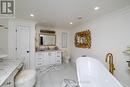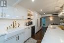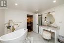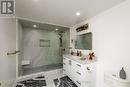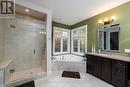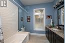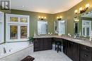 Luxury meets country in this one of a kind brick bungalow situated on just under 2 acres. With almost 5000 sq ft of living space, this home has a lot to offer! The open concept main floor includes the living room with a propane fireplace, built in shelving and a double door walk out to the covered porch. There is an ample sized kitchen and dining area with nice finishes, plenty of cupboard space and a walk out to the covered deck. The master bedroom has nice views from the windows, an electric fireplace for those cozy nights, a walk out to the covered porch. Spacious 5pc ensuite and large walk in closet to finish it off. Two more bedrooms, a 4pc, powder room and mudroom with laundry complete the main floor. The lower level has recently been fully renovated featuring a brand new chef's kitchen with top of the line built-in Thermador appliances, custom cabinetry and a spacious island. There are two full bathrooms, one 4pc including a soaker tub and matching vanity and make up station, and the other 3pc with a large custom made walk in shower and vanity. The two bedrooms feature custom closet organizers and cabinetry. Along with a pantry and an office, the lower level also features a living room with a propane fireplace and walk out to the covered patio complete with a hot tub! The home has a 2 car attached garage on the main level and a bonus underground garage space utilized as a gym. The lot is nicely landscaped and with an efficient geothermal heating and cooling system, there's nothing left to do but move in! (id:27)